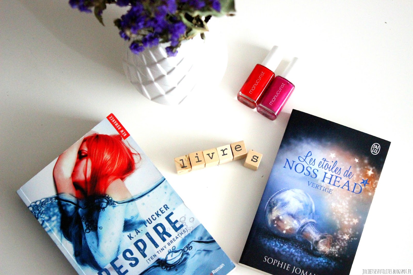 Quand j’ai terminé, direction le canapé où je prends le temps de réaliser une manucure et de poser un joli vernis. Pendant que ça sèche, je m’installe confortablement et je lis. Dernièrement, j’ai fait une razzia chez la Fnac où j’ai craqué pour le premier tome, Respire de K.A Tucker et aussi pour le premier tome de la saga Les étoiles de Noss Head de Sophie Jomain. Je pense venir vous en parler ici une fois que je les aurai lu. Ça fait un petit moment que je n’ai pas rédigé un article sur mes dernières lectures et ça me manque…