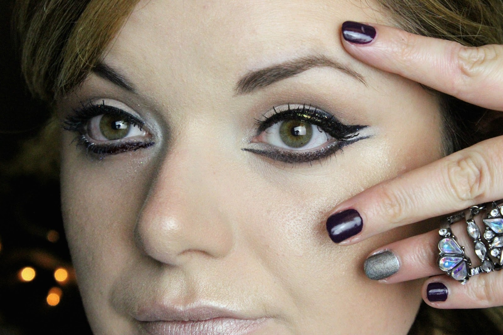 Coucou Julie 🙂 Vraiment joli ton maquillage, très bonne idée le double liner c'est hyper beau avec les petites paillettes argentées ! et puis ta bague est canon ^^ bravo ! bisous