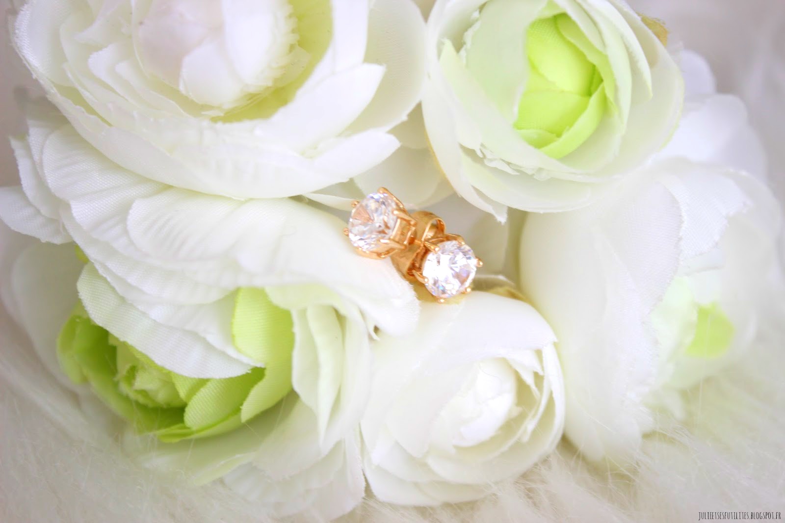 Dans ma collection de bijoux & accessoires (« Hi ! Mon 2ème prénom c’est Madame Bijoux ! »^^), j’ai constaté que je n’avais pas de boucles d’oreilles dormeuses. Ces petites boucles d’oreilles fines et discrètes qui se portent avec toute sorte de tenue vestimentaire et autres accessoires. Le must have à avoir dans sa boite à bijoux. De ce fait, j’ai décidé de réparer ce méfait en choisissant cette paire de petites dormeuses en plaqué or en forme de solitaire pour 5.95€ (indice*). Les boucles d’oreilles de ce genre c’est un peu mon talon d’Achille, si elles sont de mauvaise qualité, j’ai le lobe de l’oreille qui rougit, qui gratte et qui gonfle. Mais la marque a pensé à tout en fabriquant des bijoux sans nickel, la cause principale d’allergie.