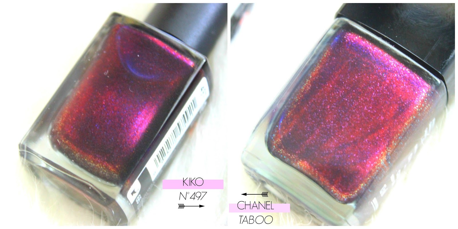 Je n’ai pas beaucoup écrit d’articles de ce genre sur le Blog. Je pense à ces deux articles, l’un sur les pinceaux à petit prix que j’avais acheté sur Amazon et qui, ma foi, étaient plutôt qualitatifs. C’est vrai que pour moins d’une vingtaine d’euros, j’avais 8 pinceaux qui faisaient le job. Ils n’ont malheureusement pas duré dans le temps mais je me souviens qu’ils maquillaient très bien. Autre bon plan que je vous avais partagé, c’est cette ressemblance évidente entre deux vernis de deux marques bien différentes. En effet, dans cet article, je mettais en relief le fait que le vernis Taboo de Chanel, qui cartonnait à l’époque, ressemble trait pour trait à un autre vernis bien moins cher, le vernis n°497 de Kiko. Et ce genre de comparatifs a l’air de vous plaire ! 😉