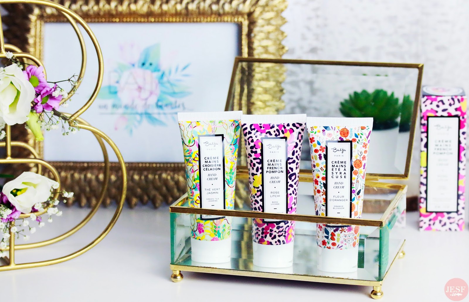 A cela s’ajoute d’autres ingrédients aux hauts pouvoirs hydratants comme le karité, l’aloé vera, la cire d’abeille, l’huile de coco… Vous obtiendrez les nouvelles crèmes pour les mains Baija ! Après avoir testé les 3 senteurs que j’ai eu la chance de recevoir: French Pompon, Croisière Céladon et Été à Syracuse, j’ai pu constater que la promesse qui consistait à lier plaisir et efficacité faite par la marque était belle et bien respectée.