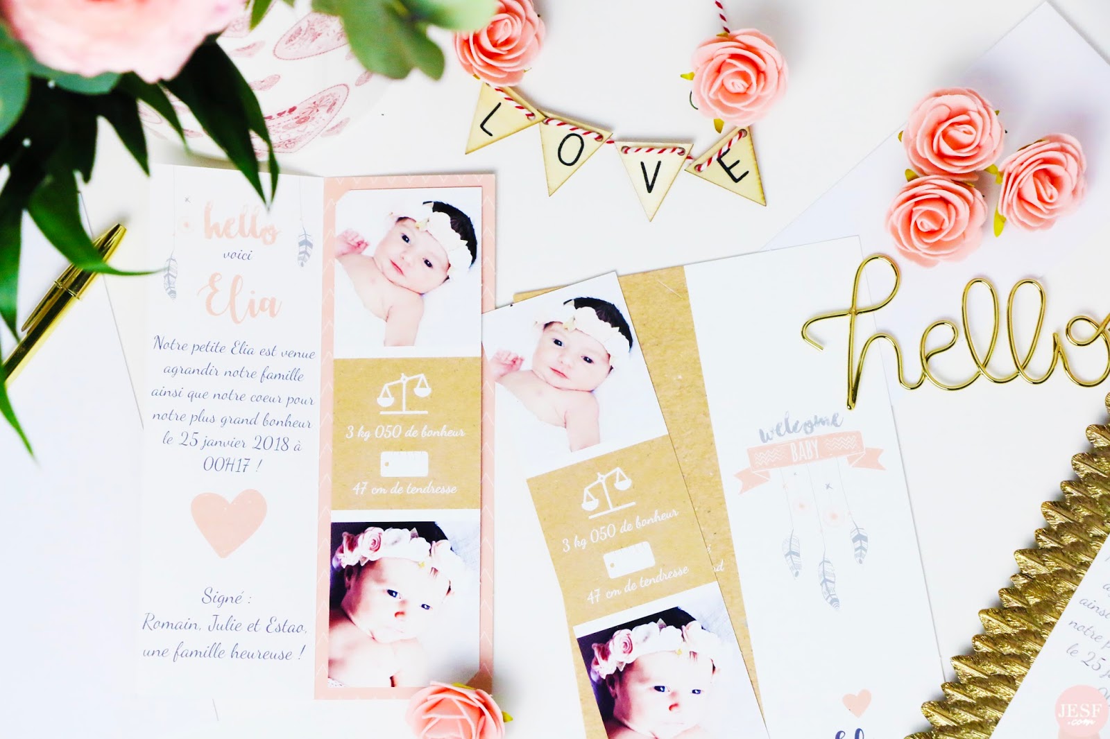 Concernant l’article d’aujourd’hui, j’ai décidé de le consacrer à un sujet important quand on devient parent: la réalisation des faire-part de naissance. Pour mon fils Estao, j’avais eu la bonne idée de créer un premier jet quelques jours avant d’accoucher. De cette manière, par la suite, il ne me restait plus qu’à corriger ce même jet avec les bons éléments: date de naissance, poids, taille… Croyez-moi, prendre de l’avance nous a enlevé une grosse épine du pied, à Romain et à moi !