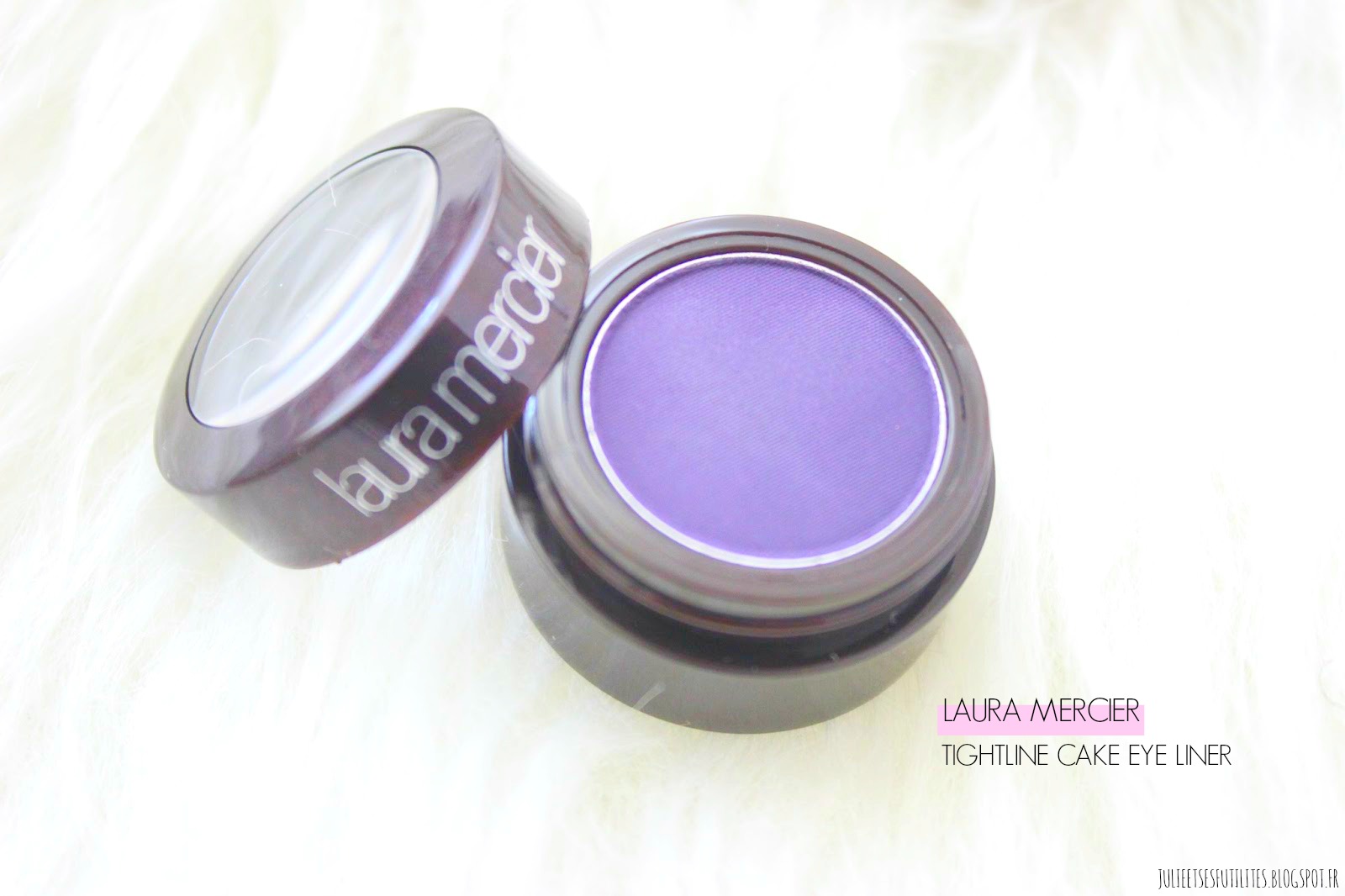 Le Tightline Cake Eyeliner de Laura Mercier. Première réaction: Késako ? Jamais entendu parler ! Et en lisant le petit fascicule fourni, j’ai découvert que le Cake Eyeliner était en fait un eyeliner en palette qu’il fallait humidifier et qui était parfait pour intensifier le ras de cils. Pourquoi pas ! Par contre, la couleur choisie n’est pas une couleur vers laquelle je me serai tournée. Le violet en eyeliner très peu pour moi. Je suis classique, je préfère le noir 😉 Mais apparemment, une fois mouillée et posée, le violet ressemblerait plus à un eyeliner noir…A voir !
