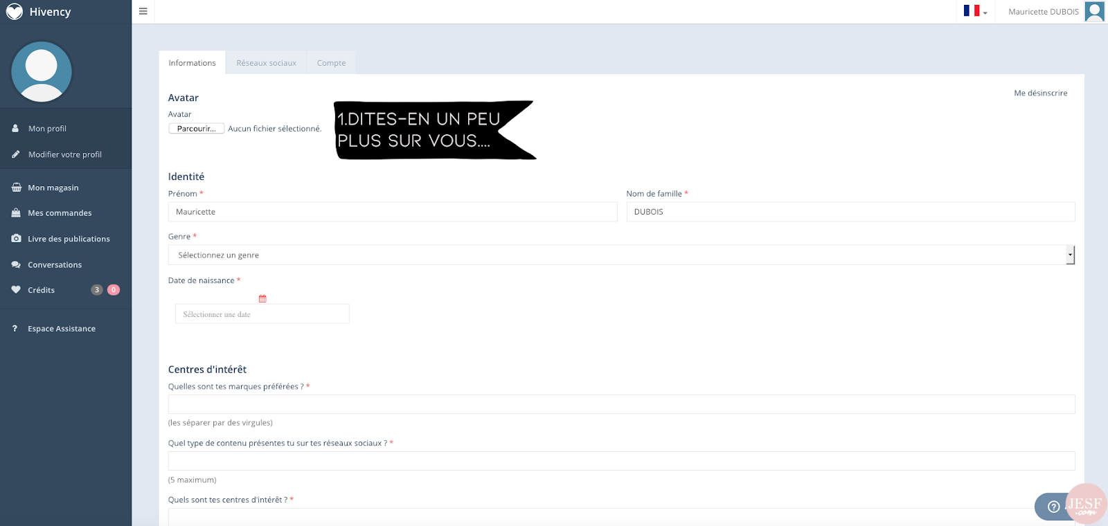 Ça y est ! Vous êtes officiellement inscrit sur Hivency.com. Mais avant de pouvoir postuler, il va falloir taper sur votre clavier. En premier lieu, il faut renseigner son profil: votre avatar (c’est toujours mieux de montrer votre bouille, les marques mettent un visage sur un profil !), votre identité, vos centres d’intérêt, le type de contenu que vous proposez…