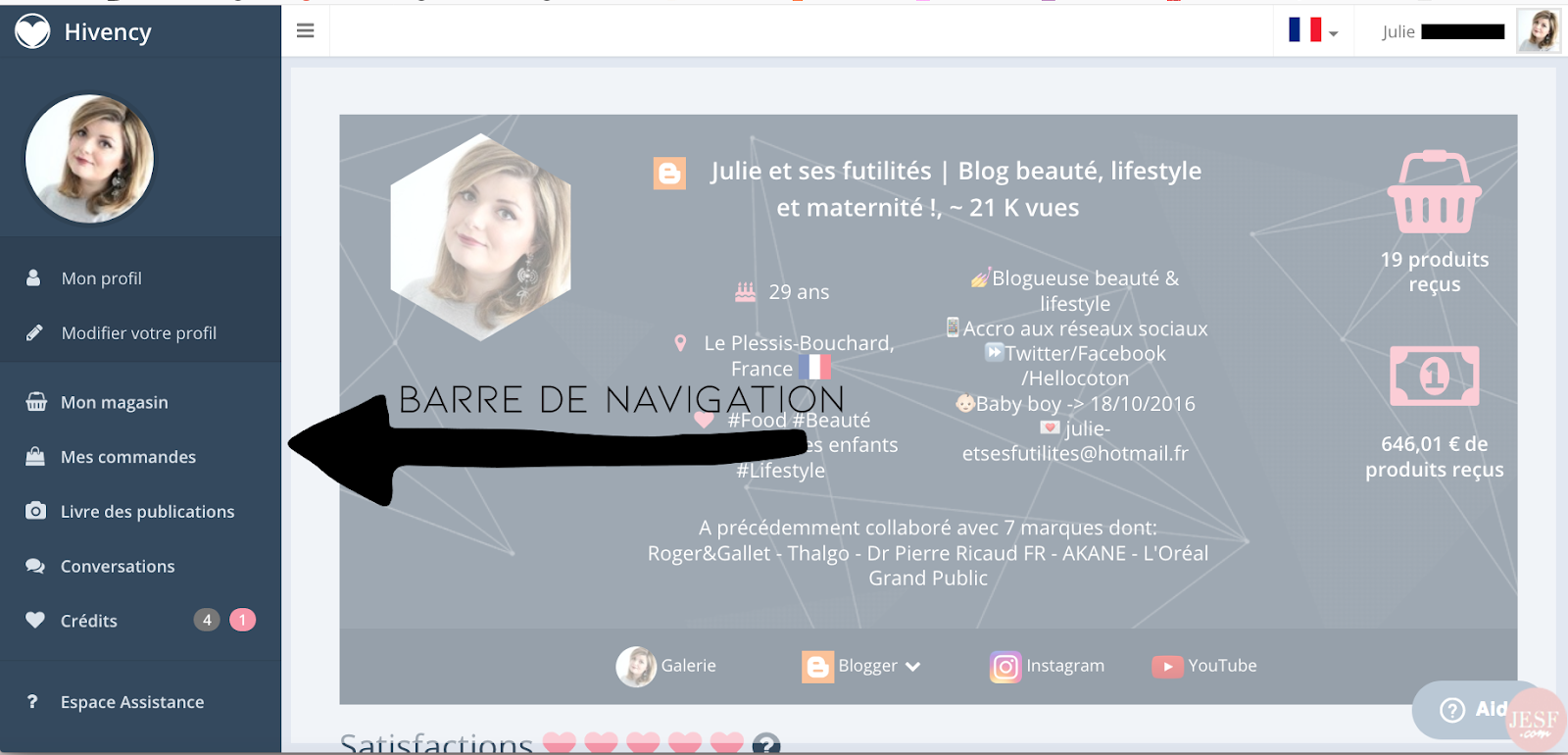 Hé oui, sur votre profil, le taux de satisfaction attribué par les marques apparait. De un à cinq cœurs, cinq étant le maximum, c’est un critère à ne pas négliger qui donne (ou pas) envie aux marques de collaborer avec vous. Le délai de publication, la qualité de votre article/post, au respect des conditions… sont d’autant de critères notés par les marques. En faisant cet article, j’ai découvert que les marques peuvent même laisser un petit commentaire afin de commenter votre travail.