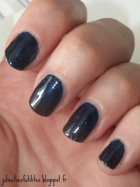 Je me suis donc laissée tenter par ce bleu foncé joliment pailleté et joliment appelé « cosmique ».